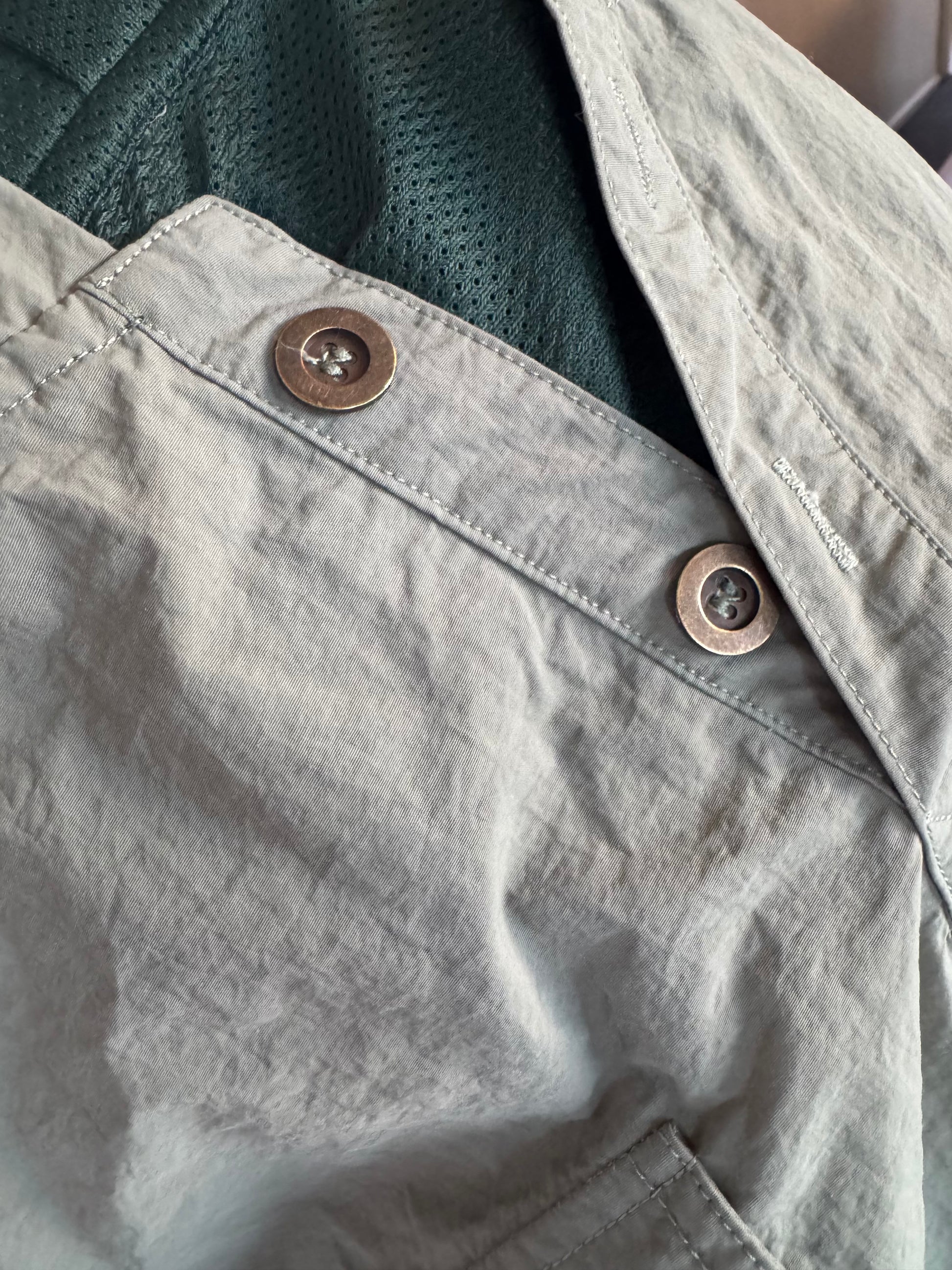 Mesh vents help you dump heat quickly. Oversized chest pockets give you clean storage with magnetic closures for easy access. Adjustable sleeves shift between full coverage and open airflow depending on how hard the day gets. The fit is relaxed for freedom of movement and makes it easy to layer over thicker pieces when the temperature drops.